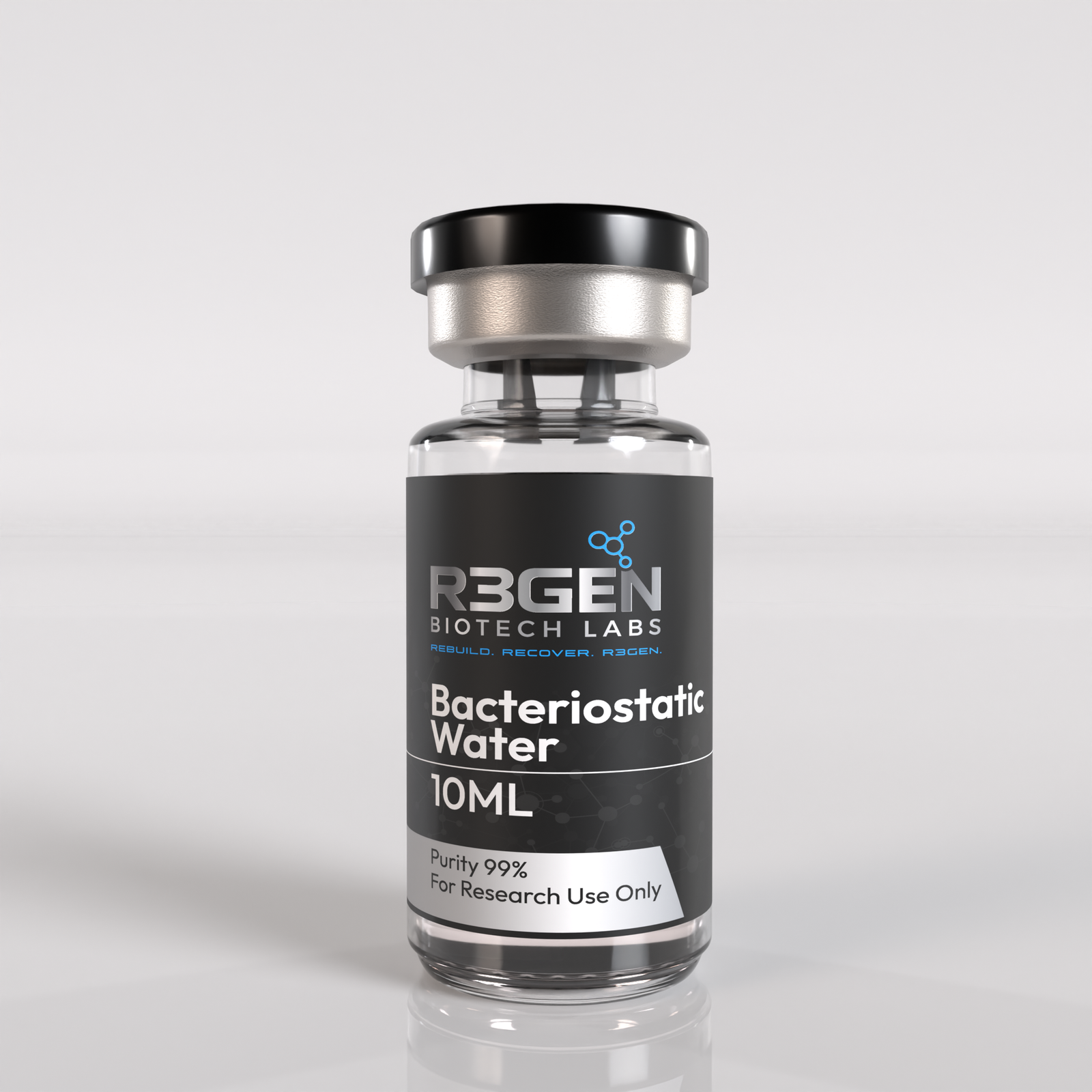 Bacteriostatic Water is a sterile, isotonic solution containing a low concentration of sodium benzoate as a preservative to inhibit bacterial growth. This product is designed for use in research and laboratory applications where precise dilution and preservation of peptide solutions are necessary.