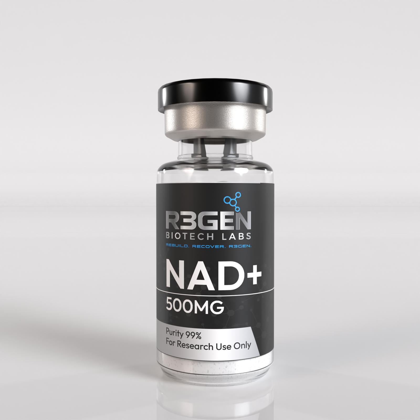 NAD+ is synthesized endogenously from dietary precursors like nicotinamide riboside or nicotinamide mononucleotide, though exogenous supplementation may be investigated in research settings to study its metabolic effects. In vitro and in vivo studies have examined its role in cellular energy homeostasis, redox balance, and aging-related pathways. This product is designed for use in controlled experimental settings where NAD+ supplementation is being evaluated for its biochemical or molecular effects.